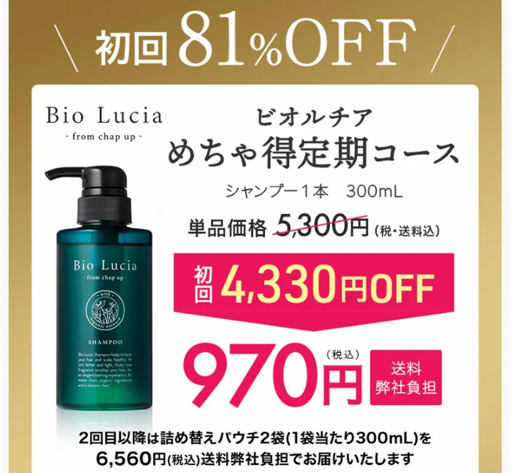 ビオルチアシャンプーのめちゃ得定期コースは、こんなに魅力的。